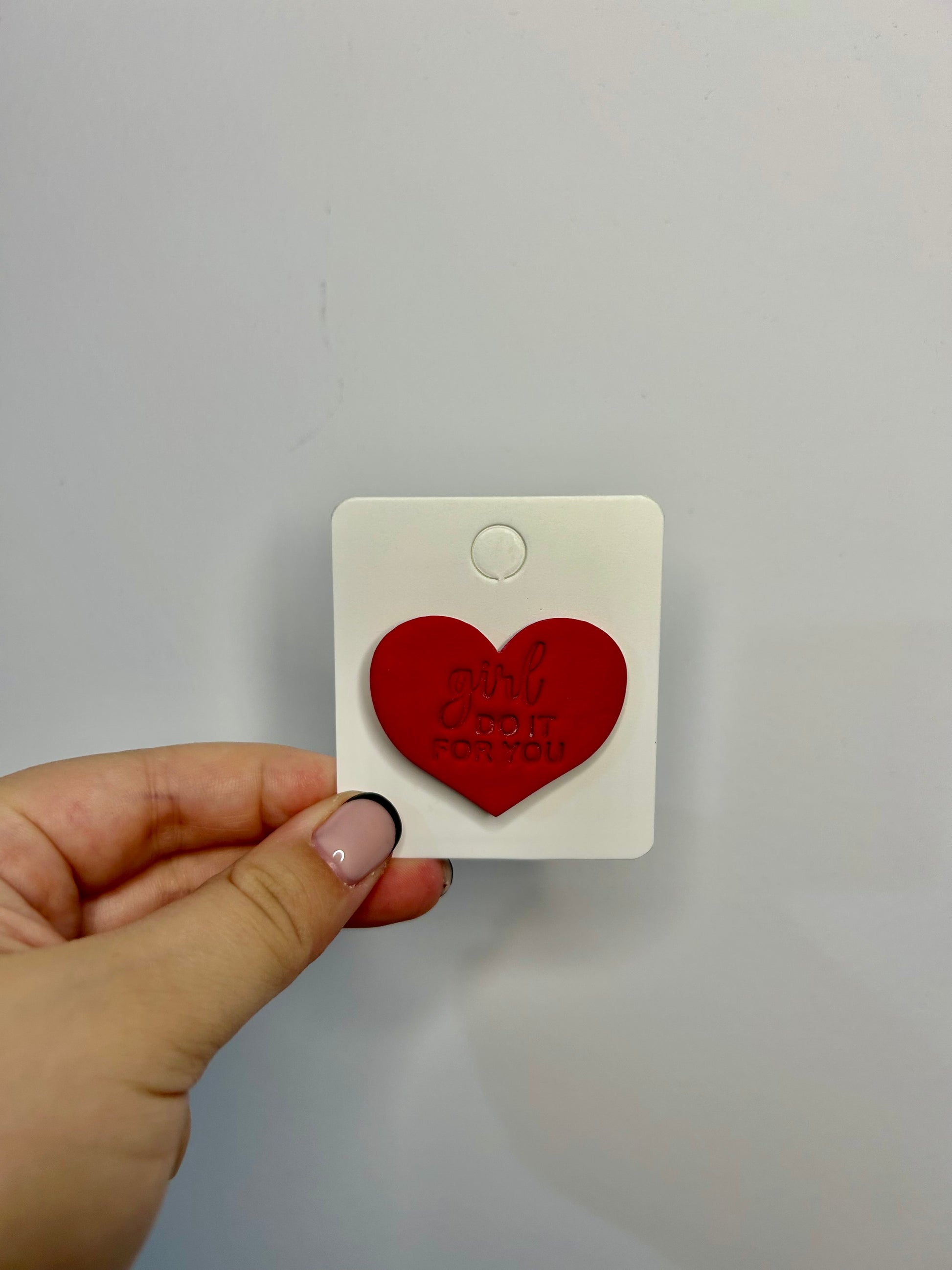 Broșă inimă girl do it for you din lut polimeric lucrată manual