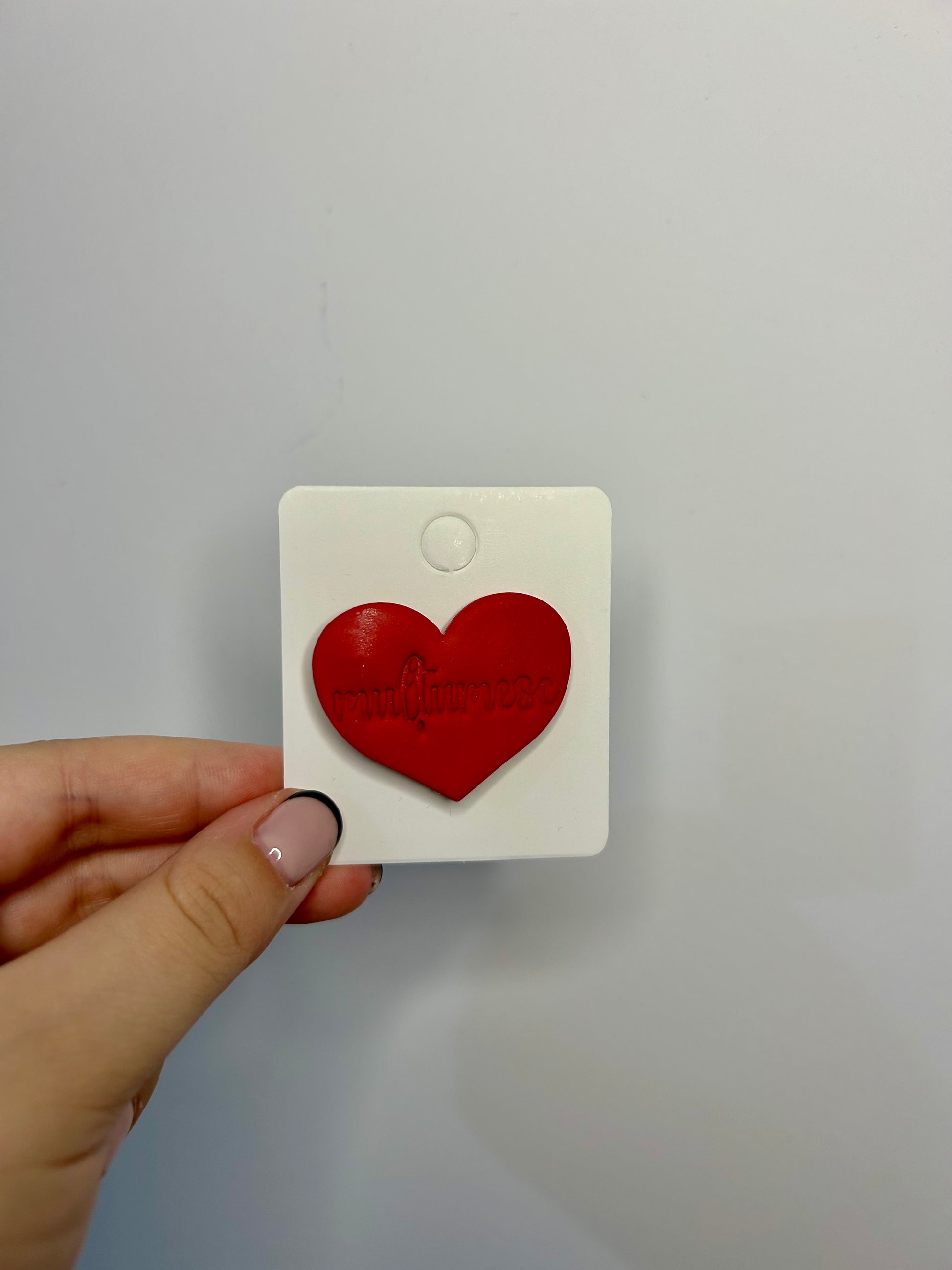 Broșă inimă mulțumesc din lut polimeric lucrată manual