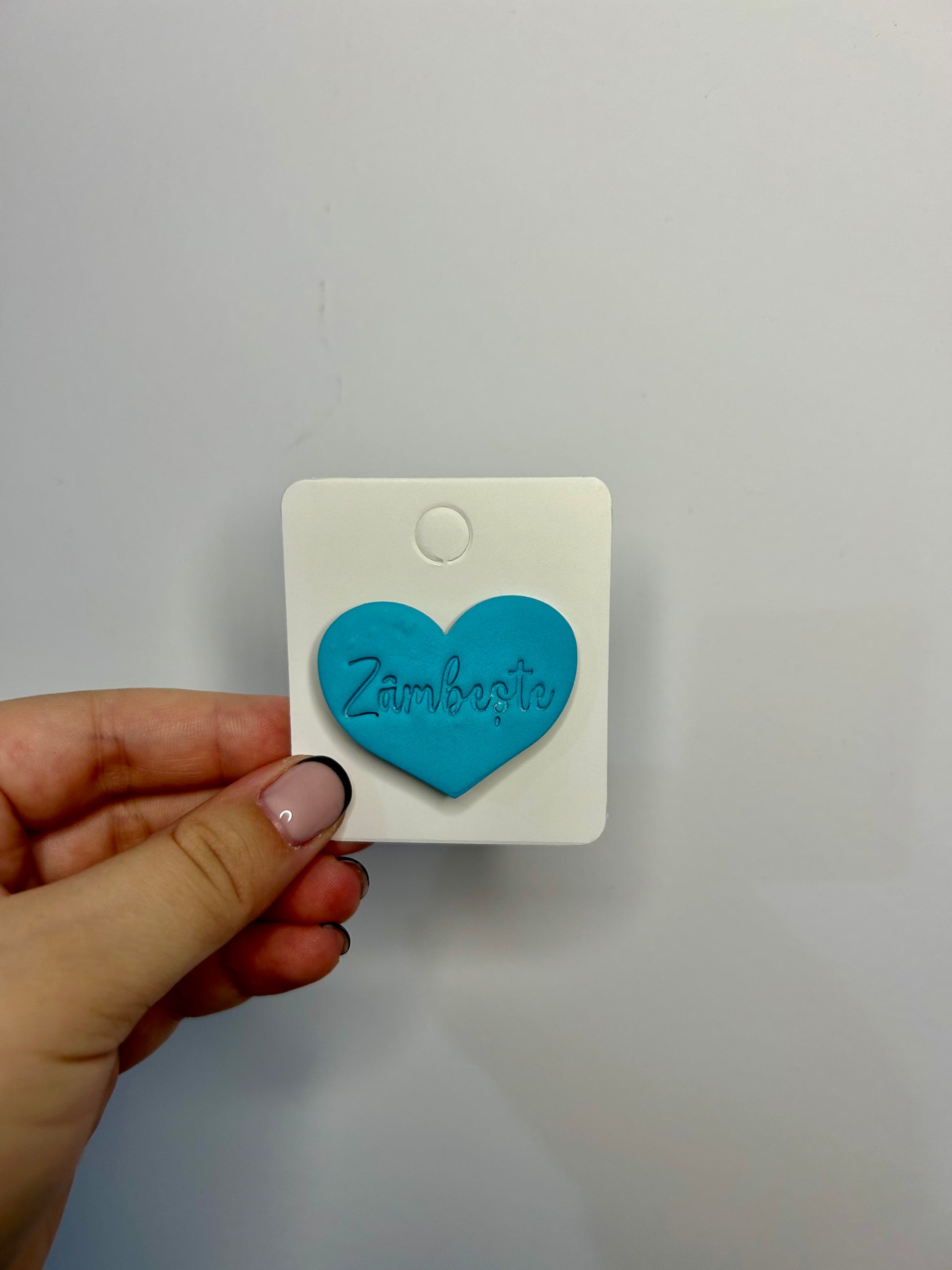 Broșă inimă zâmbește din lut polimeric lucrată manual