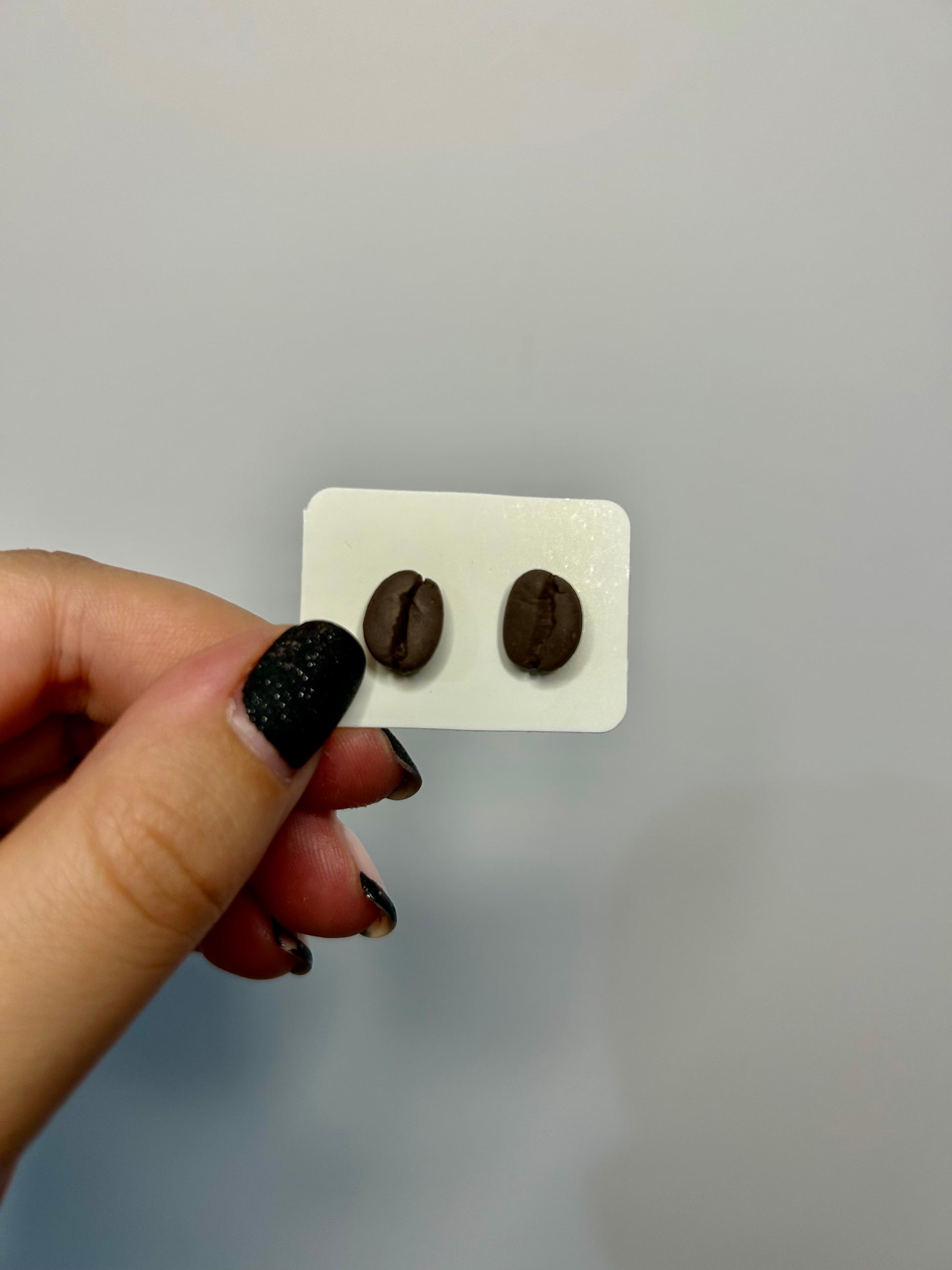 Cercei mini boabe cafea din lut polimeric lucrați manual