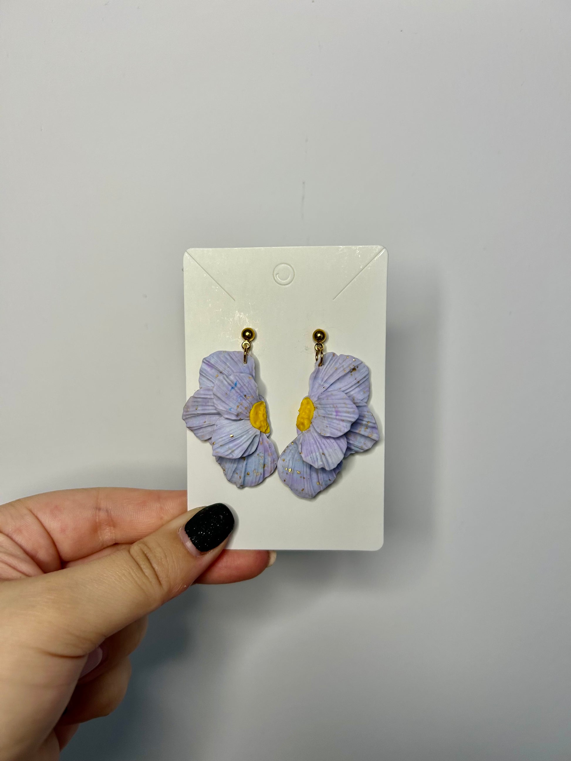 Cercei petale floare 2 din lut polimeric lucrați manual