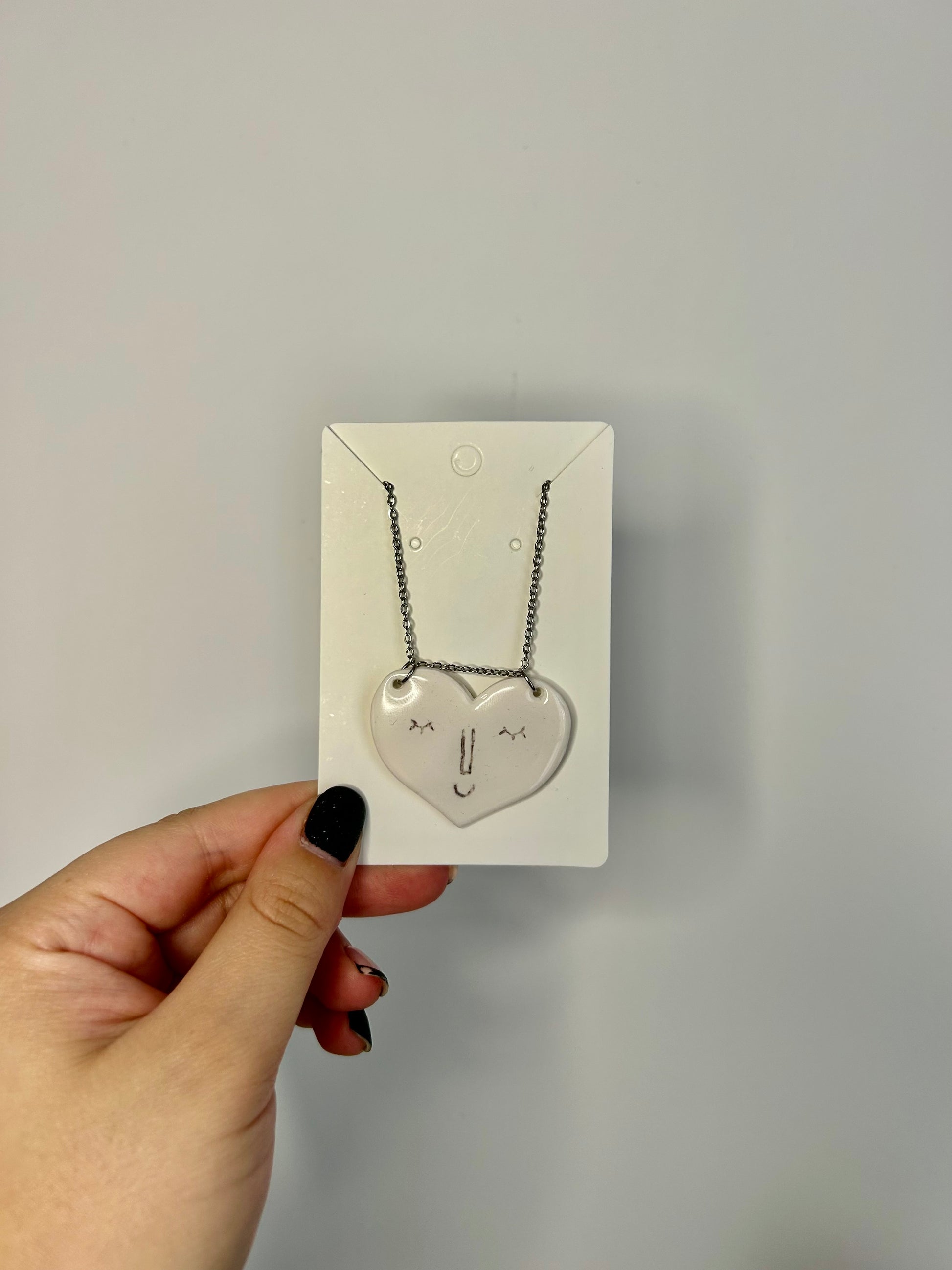 Lanț pandativ inimă chip din lut polimeric lucrat manual